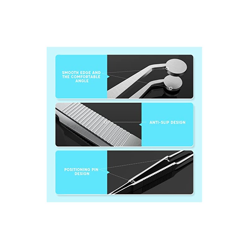 - 【EASY TO USE 】Each stainless steel slant tip tweezer is about 4.33 inch/ 11 cm long, and the open is 5 mm. Non slip matte surface provides a comfortable grip and major controlvery comfortable to use.