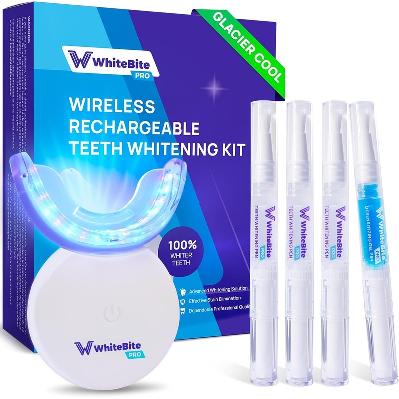 Whitebite Pro Premium Teeth Whitening Kit for Sensitive Teeth – 32X Dual LED Light System with 3 Whitening Pens & 1 Remineralizing Pen (Glacier Cool)