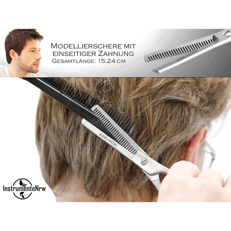 You have the choice of hair scissors between a one-sided and a two-sided thinning teeth.