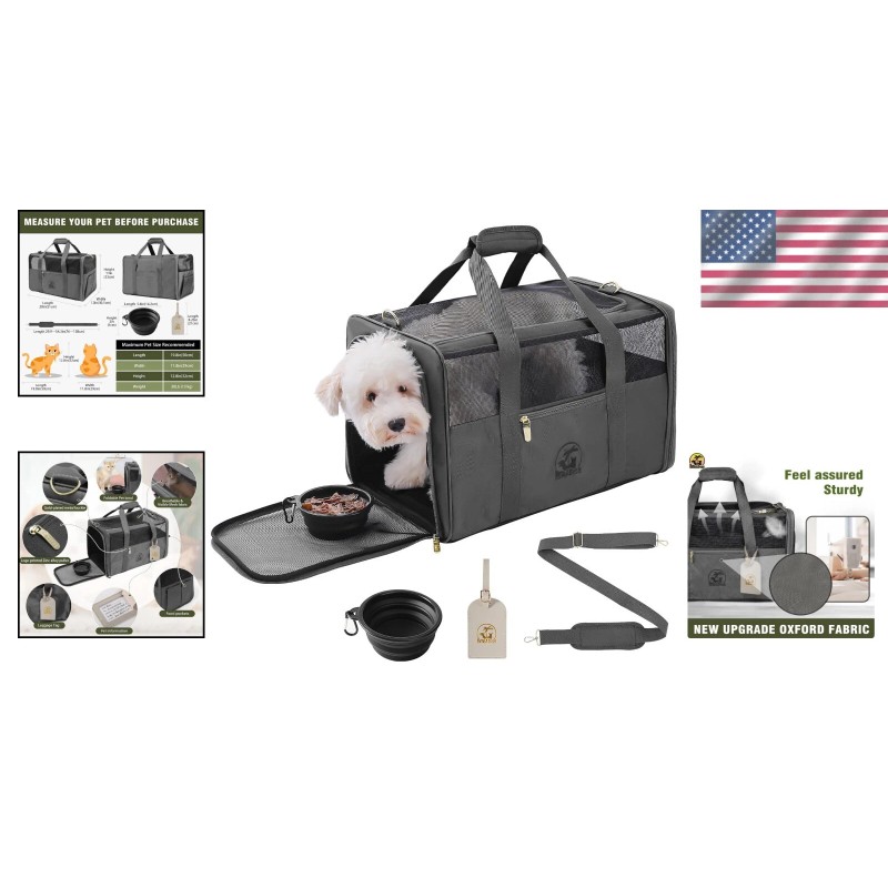 Premium Travel Pet Carrier with Foldable Design - Stylish & Lightweight Grey