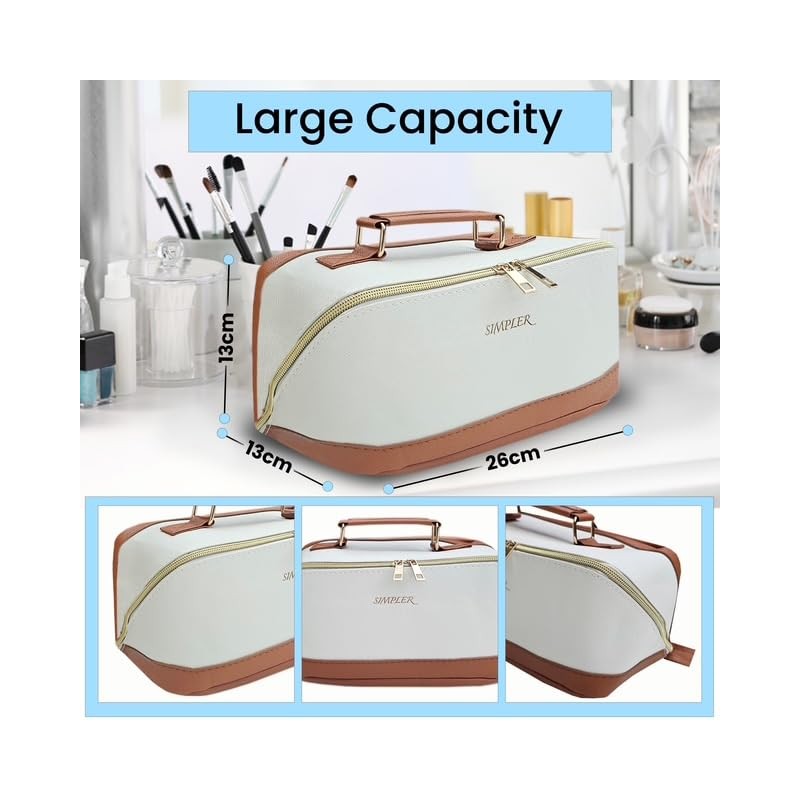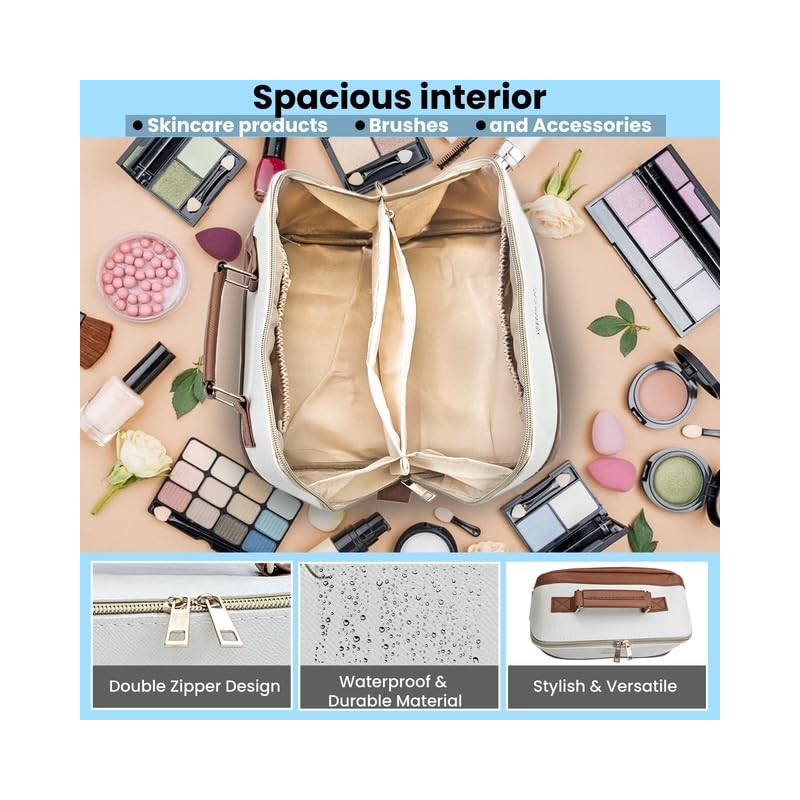 - SPACIOUS INTERIOR: Large main compartment with smooth zip closure provides ample room for cosmetics, toiletries and beauty essentials