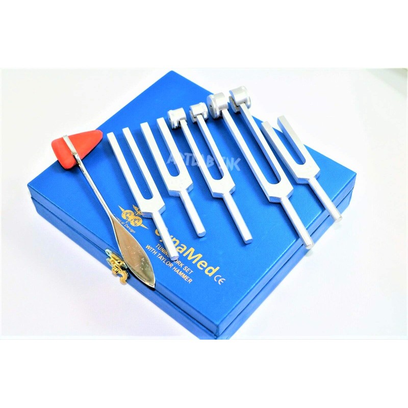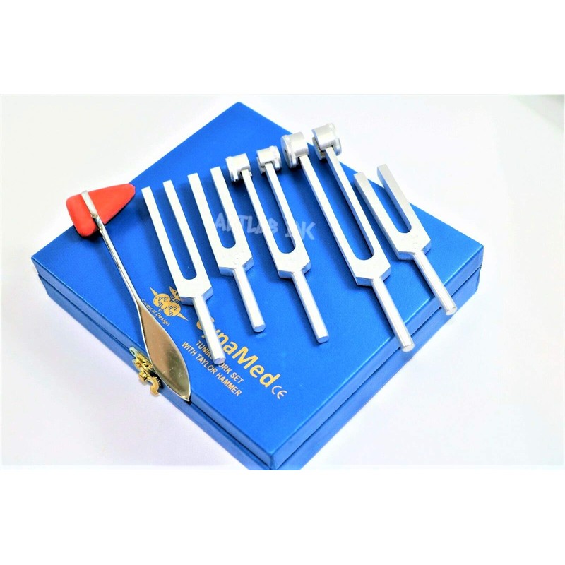 Premium Tuning Fork Set of 6 - Diagnostic Instruments + Reflex Percussion Taylor Hammer+Beautiful Box
