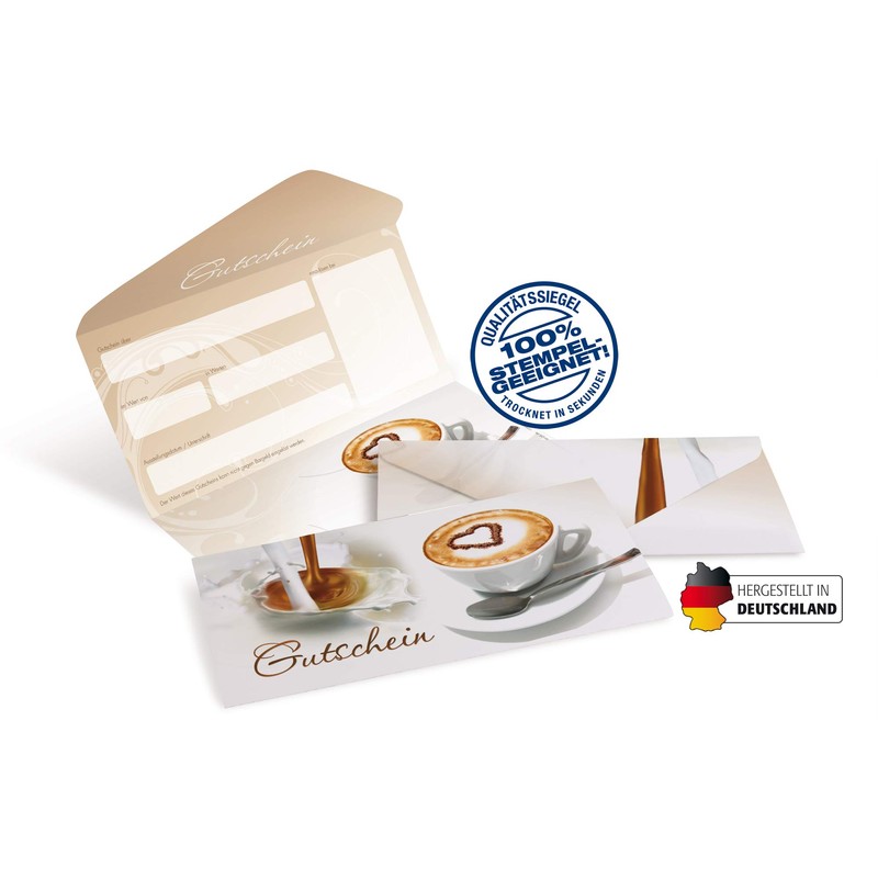 Premium voucher cards (pack of 10) as sealable folding card, easy to enter values and stamp, for restaurant, catering, wine trade