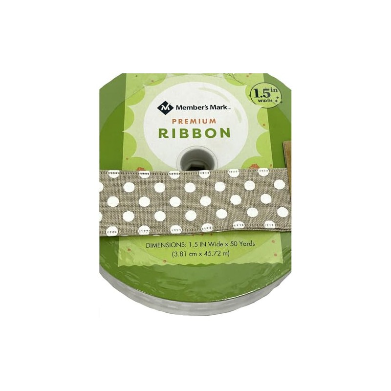Premium Wired Ribbon 50 Yards 1.5 in Width, Brown Polka Dot