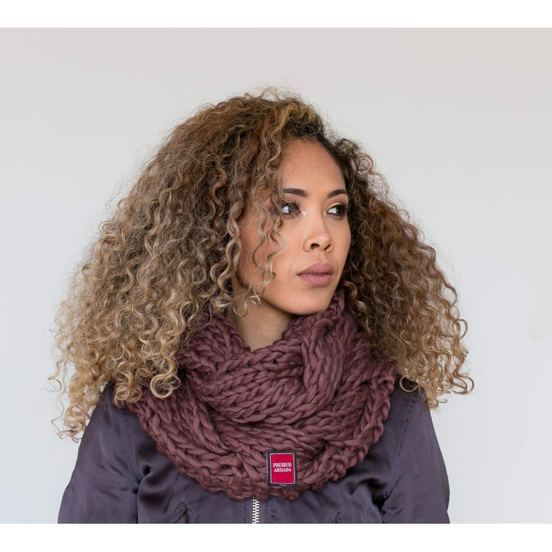 PREMIUMARMADA Knitted Scarf Chunky Knitted Cable Loop Wool Scarf 100% Virgin Wool Thick Warm Knitted Neck Warmer, Dark coffee