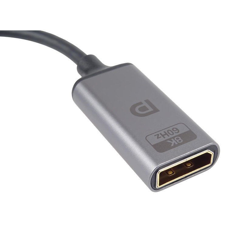PremiumCord 8K USB-C to DisplayPort Adapter M/F, DP 1.4, UHD 8K 4320p 60Hz, 4K 2160p 144Hz, HDR10, HDCP 2.2, 32.4 Gbps, Aluminium Housing, Space Grey, 20 cm