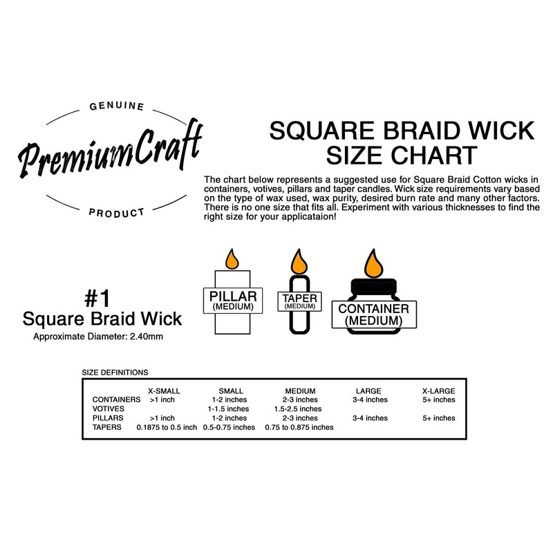 PremiumCraft Square Braid Cotton Candle Wick - #1