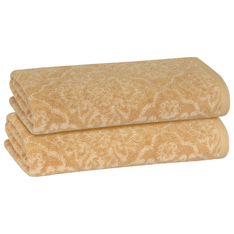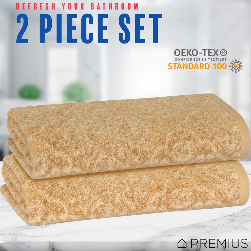 PREMIUS 2 Pack Damask Hand Towel, Bath Towel, and Bath Sheet Towel, 100% Cotton Yarn Dyed, Lux Drying Experience, Great for Hands and Body, Perfect for Spa & Home Use (Wheat, Bath Towel)