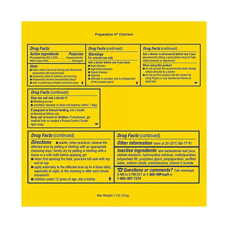 - Active Ingredients: Phenylephrine HCl 0.25%, Witch Hazel 50%