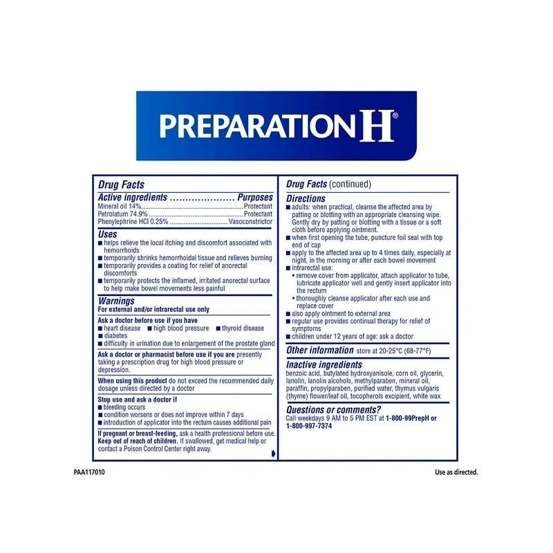 - Preparation H Hemorrhoidal Ointment 2 Ounce Tube (Pack of 2)