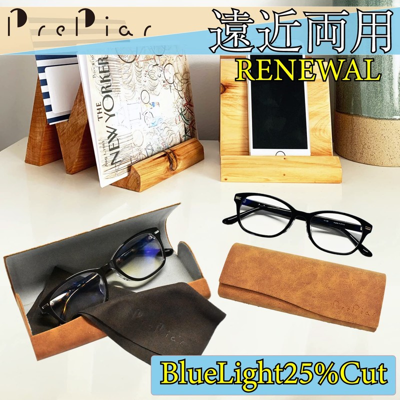 PrePiar 老眼鏡 遠近両用 2.0 累進多焦点 ブルーライトカット ネイビー 3ヶ月保証 シニアグラス メンズ レディース おしゃれ メガネ