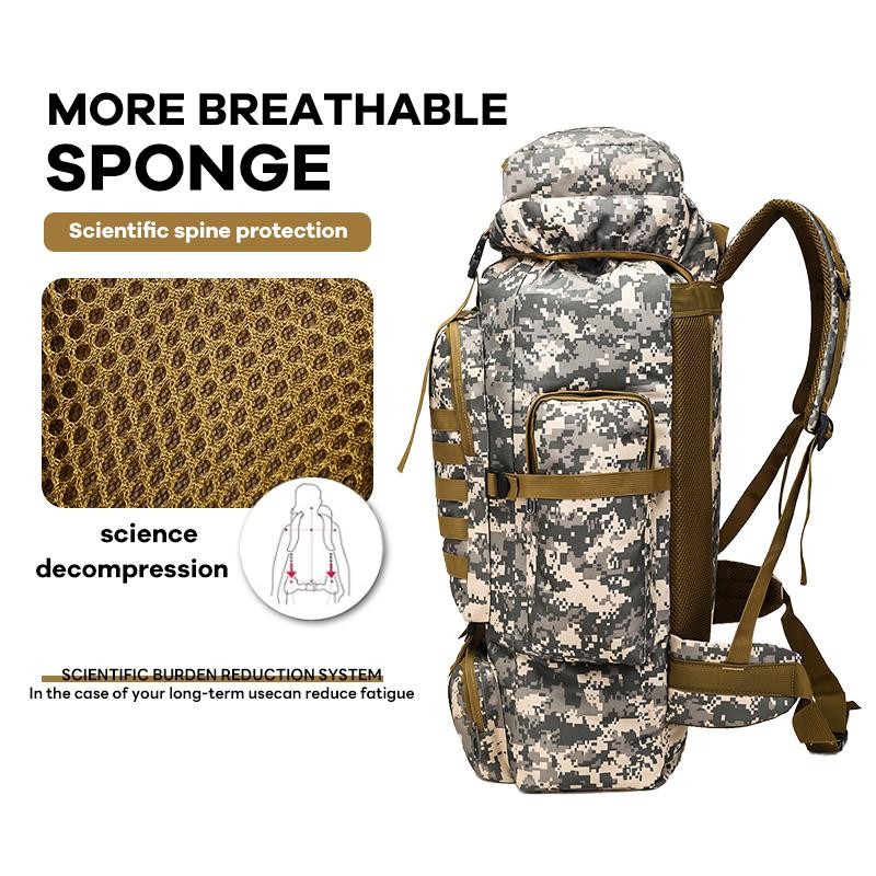 【Camo Pattern】:Adorned with a distinctive camopattern, this backpack is not only functional but adds anelement of style to your outdoor gear.
