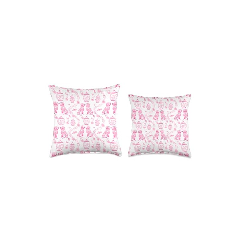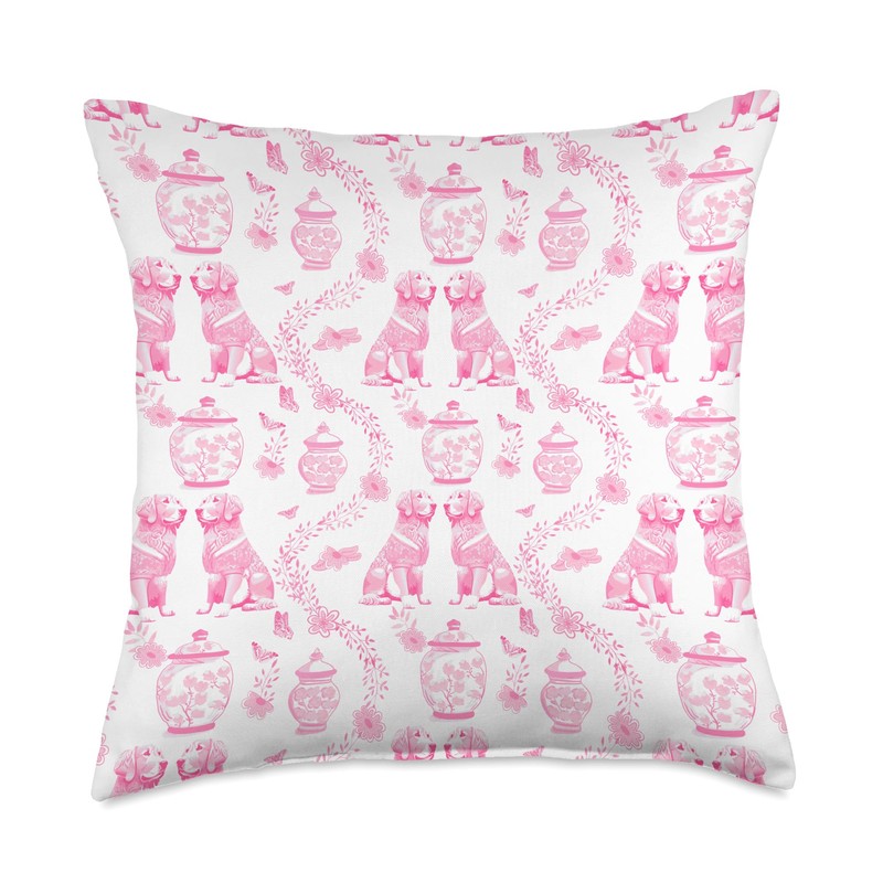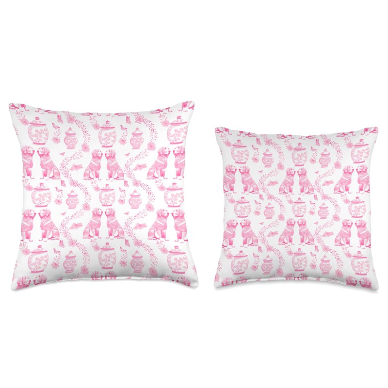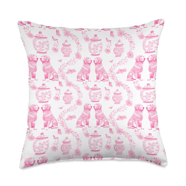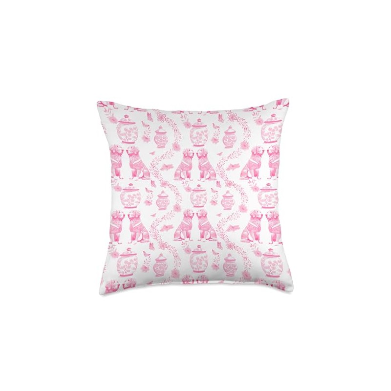 Preppy Pink & White Toile Golden Retriever Dog Throw Pillow