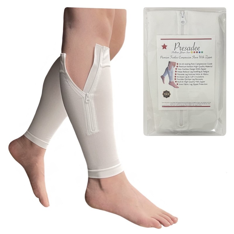 Presadee - Mangas para espinilleras (compresión YKK, 20 – 30 mmHg, sin pies), color blanco