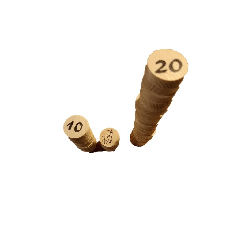 - Wooden stones made of spruce wood, diameter 35 mm and 10 mm high