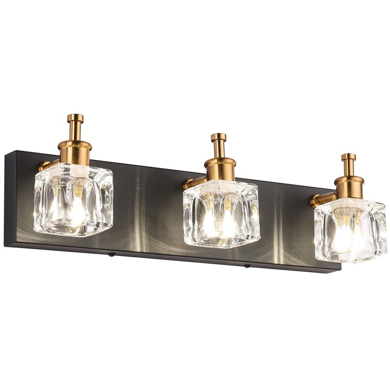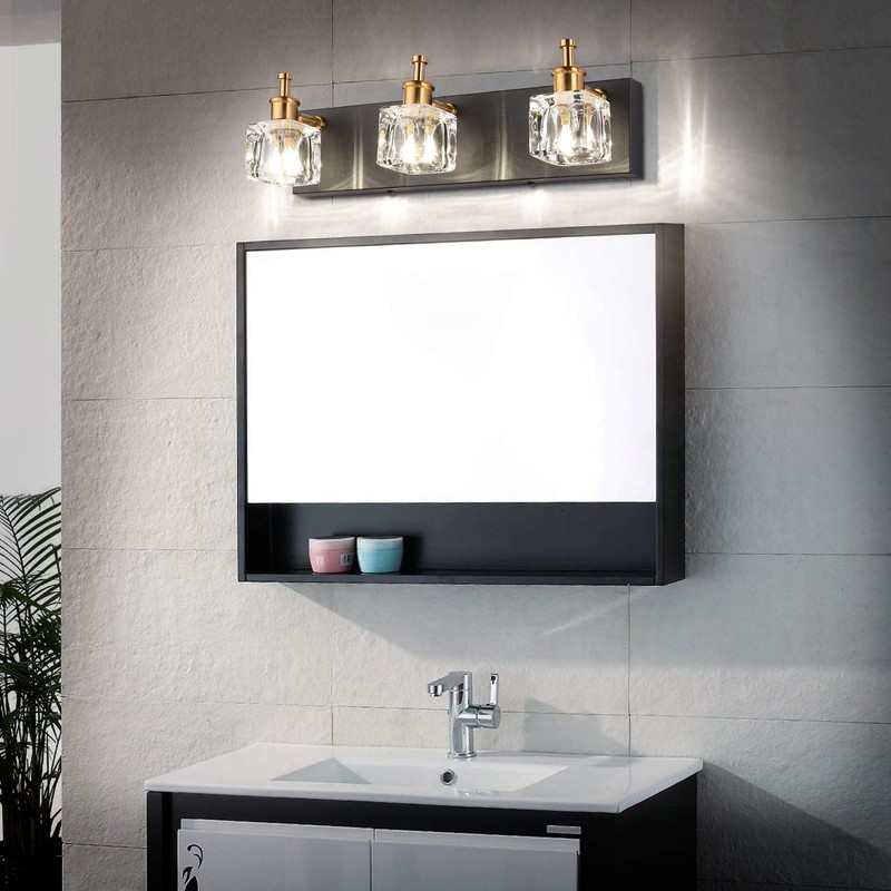 PRESDE Modern Black Bathroom Vanity Light Fixtures Over Mirror LED Crystal 3 Light Bath Wall Lighting(Exclude Bulb)