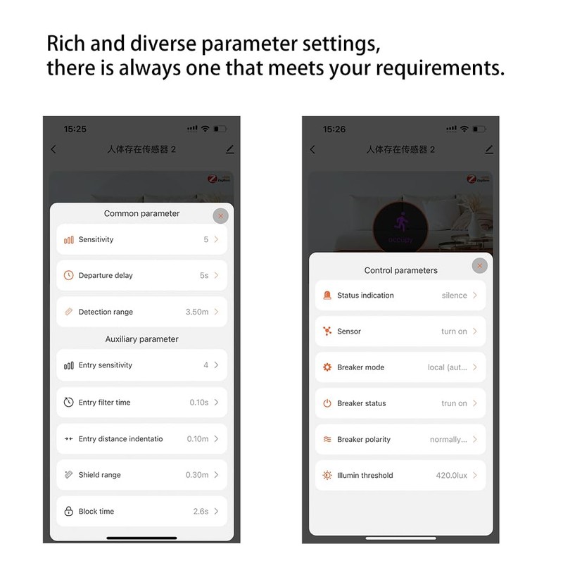- 【Advanced New Design with Multiple Settings】8 types of Common Parameter Settings for sensors support setting, and 5 types of Control Parameter Settings support setting. There is always a parameter that suits your usage scenario