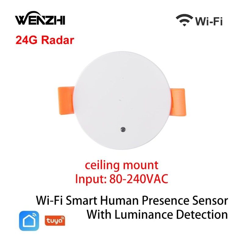 Presence Sensor, WenzhiIoT Smart Motion Sensor WiFi 24GHz Radar MmWave Presence Sensor Movement Body Motion Sensor with Luminance/Distance Detection 110/220V Ceiling Mount Tuya Smart Life Home