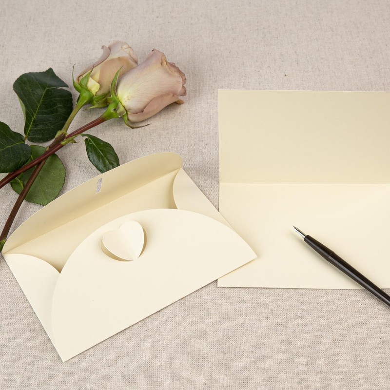 - Blank folding cards and envelopes with heart closure pre-folded to design and fold yourself – the envelopes and blank cards are delivered flat