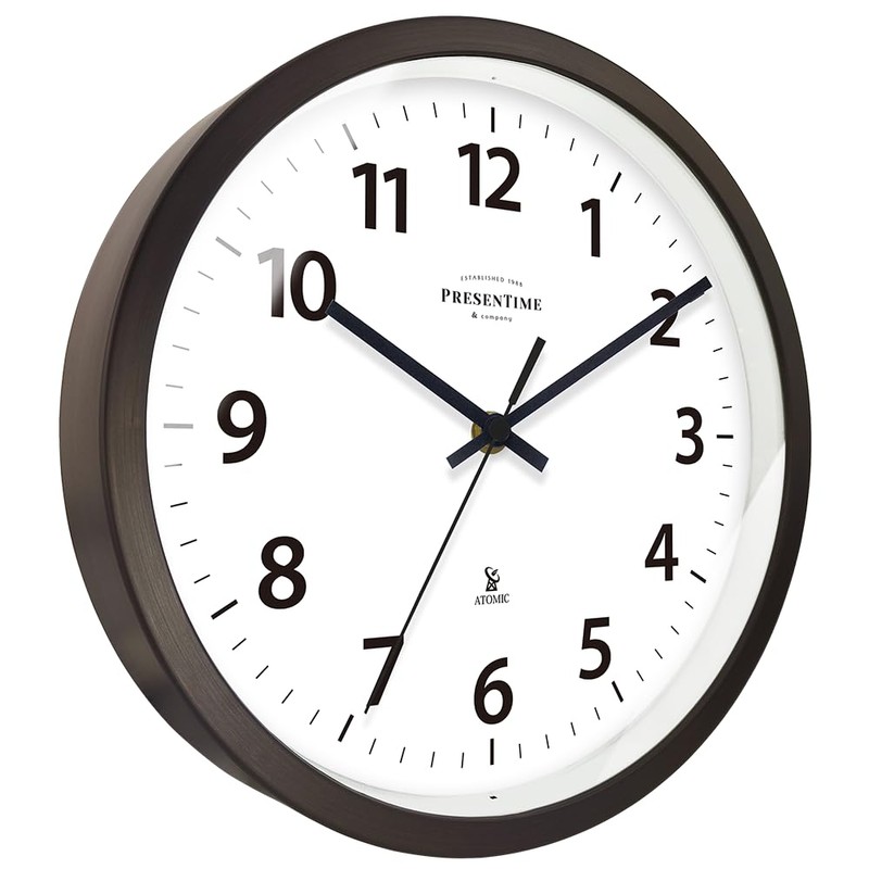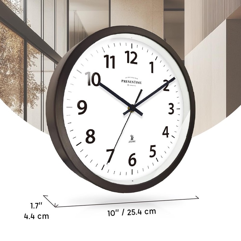 Presentime & Co 10" Atomic Wall Clock, Silent no Ticking, Automatically Sets Itself and Adjust to Daylight Saving Time by WWVB - Oil Rubbed Bronze Finish. (Home Office)