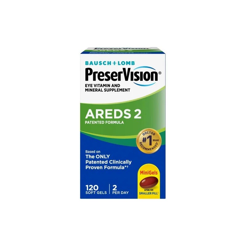 Preservision Areds 2 de 120 Capsulas Blandas Sabor Neutro vitaminas y minerales para la vista de adultos contiene lutena vitamina C zeaxantina zinc y