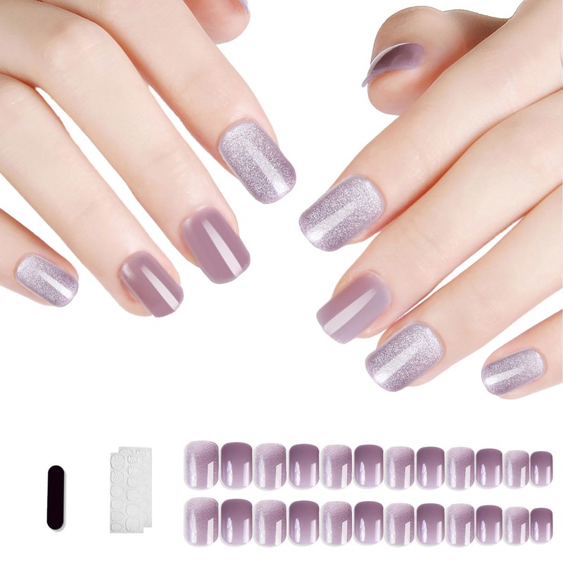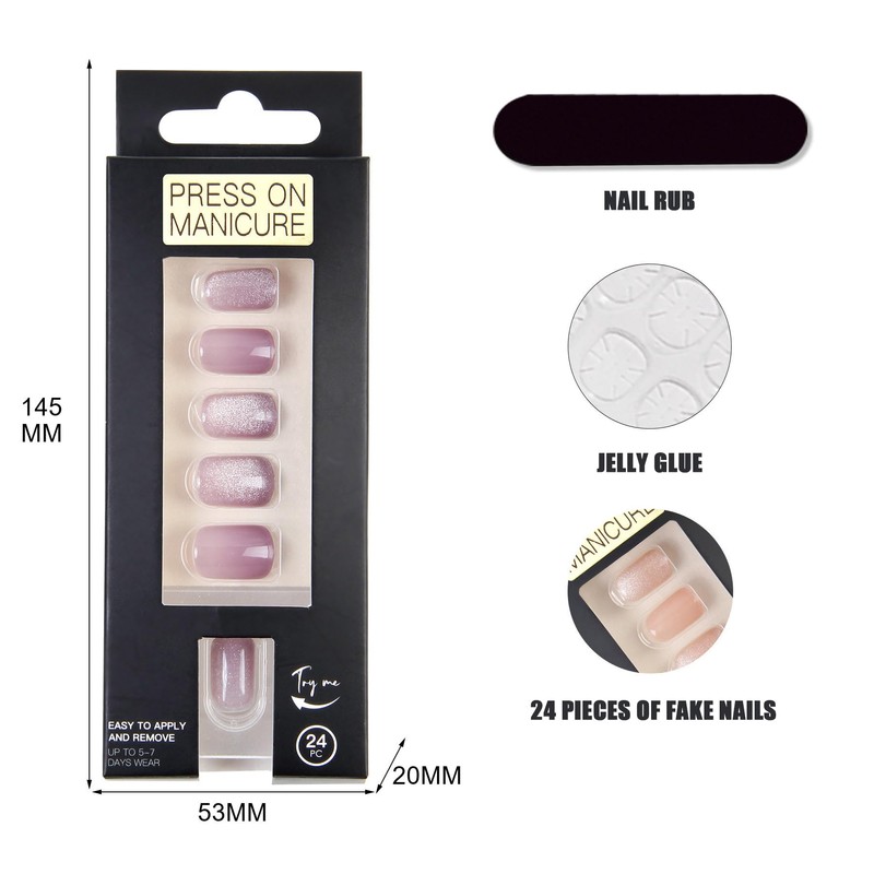 Press-on fake nails starry sky cat eye wearable nails new short square head 24 pieces of manicure nails reusable