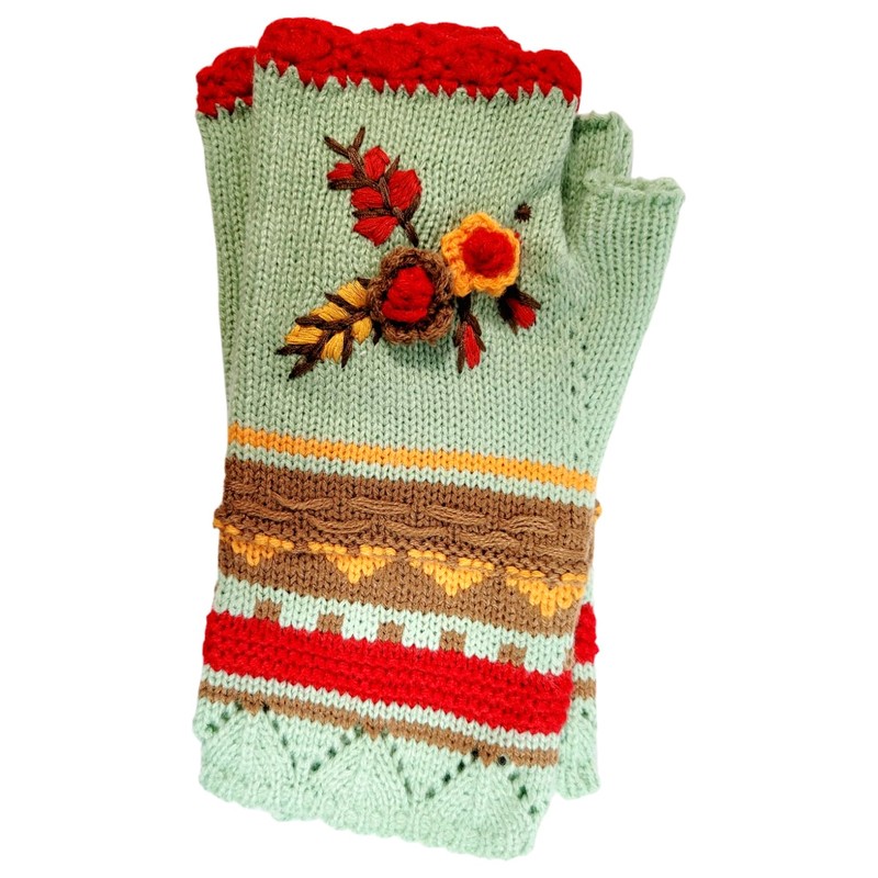 • We've paired oh-so-soft fingerless gloves in bold colors and crocheted flower detail with coordinating press on nail sets. Pieces are tied together with matching organza ribbon for instant gift giving.