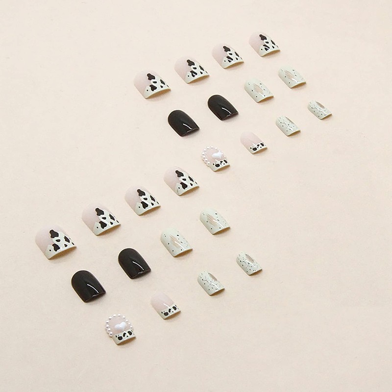 Press on Nail Short Square Length, 24Pcs Full Cover Reusable False Nails Kits, Glue On Nails with Cow Print Designs, Artificial Fingernails Acrylic Fake Nails for Women, Stick on Nails Coffin Shape