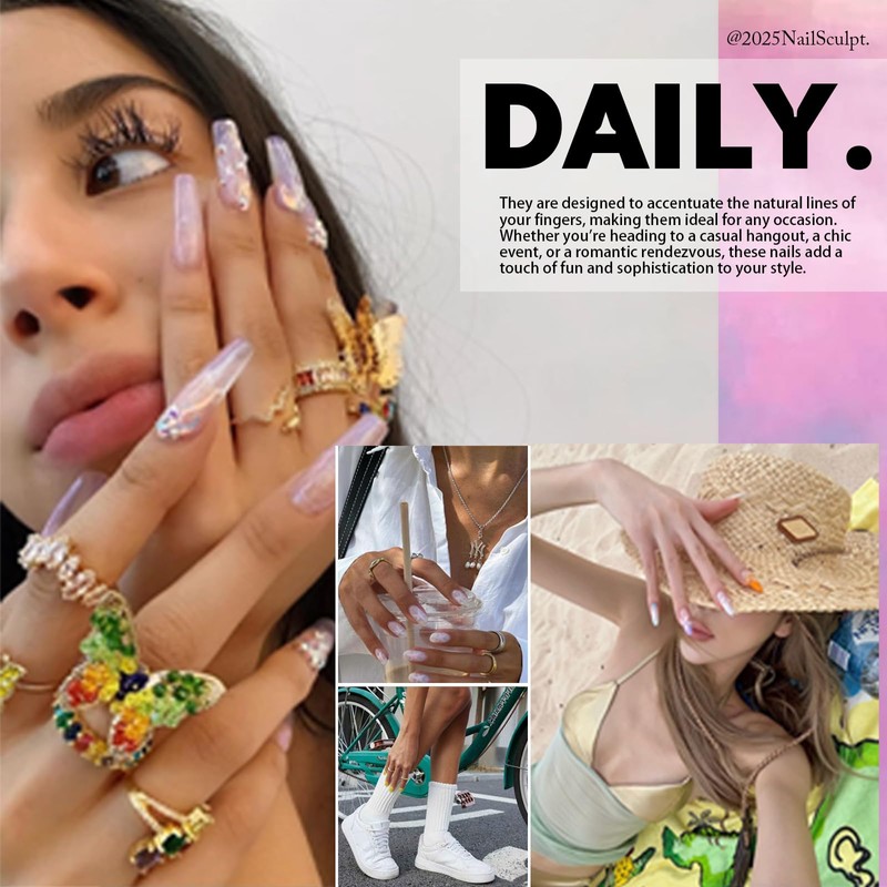 Discover Nailsculpt's stunning press-on nails this season, featuring eye-catching patterns and designs that are sure to turn heads. Experience a salon-quality manicure in minutes with our complete Nailsculpt Kit, tailored to suit your unique style. These long-lasting acrylic nails endure for 20 days, perfect for professional gatherings and elegant occasions. Quick, effortless application and easy removal turn every day into a nail showcase.