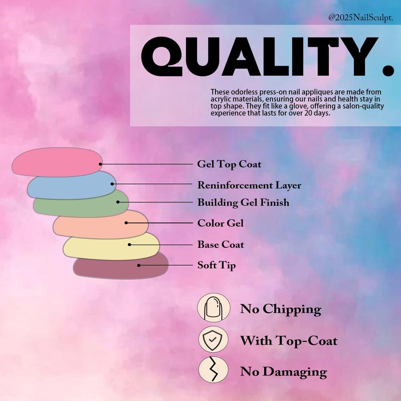 • Durable, Reusable, and Harm-Free Goodbye: Nailsculpt's nails wear their protective gel like a boss, so you can text, tend, clean, and cuddle pets without a hitch. When it's time to say bye, a warm water bath and they're gone, no damage done. Style that sticks around, that's the Nailsculpt way.