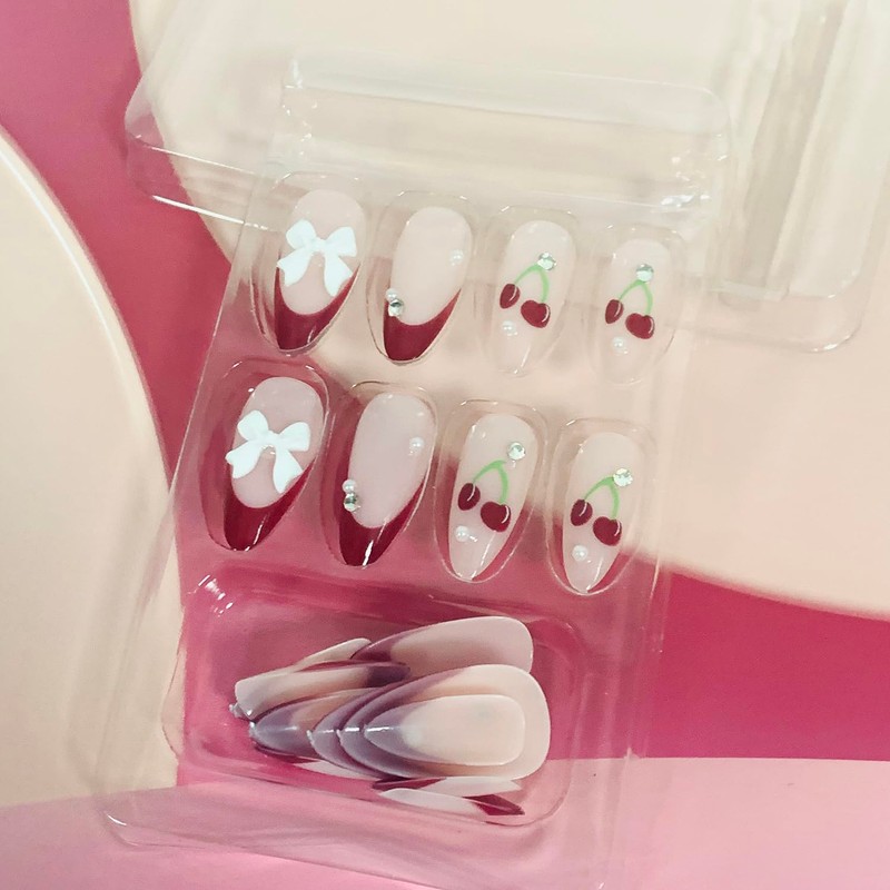 • Eye-catching Design: Beautiful red french almond medium length nails with cherry patterns and bow designs that will make you stand out in any occasion.