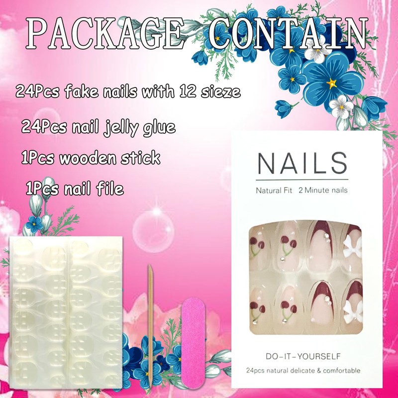 • Great Value: The package contains 24 pieces of almond false nails of different sizes, 1 mini nail file, 1 small wooden stick, 1 piece of nail adhesive tabs, giving you plenty of nails to use for multiple occasions.