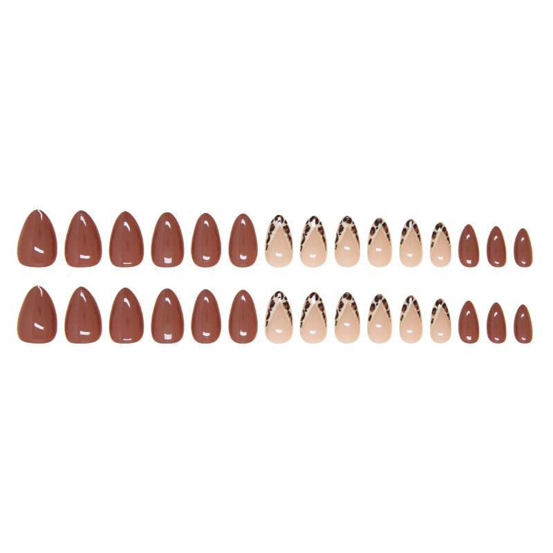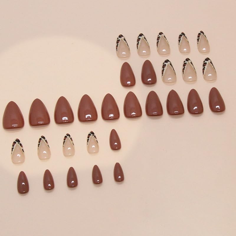 Press On Nails Almond Short Square Ballet Shaped, Cute Design Flower Bow Fake Nails, Stick On Nails,Glue on Nails on 24PCS (Brown Leopard French)