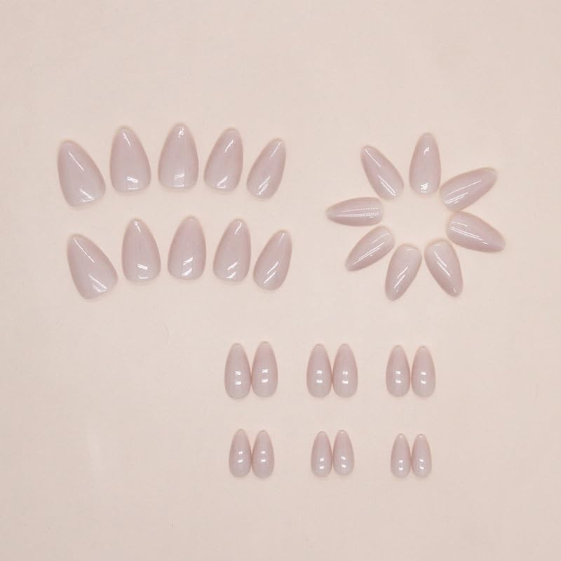 Press On Nails, Alomnd Medium Shape, Solid Dark Color Fake Nails, Stick on Nails,Glue on Nails False Nails on 24PCS (Clear Nude)