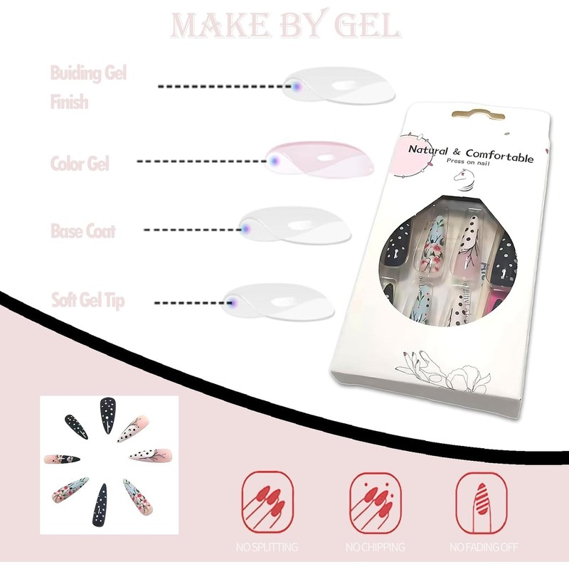 - 【Environmental Safety】False nails long are made of non-toxic and high-toughness ABS material, which is a kind of green-friendly environmental material, cosmetic grade, and Maternity & Children-friendly. False nails long almond is non-toxic and odourless, so you can wear it with peace of mind.