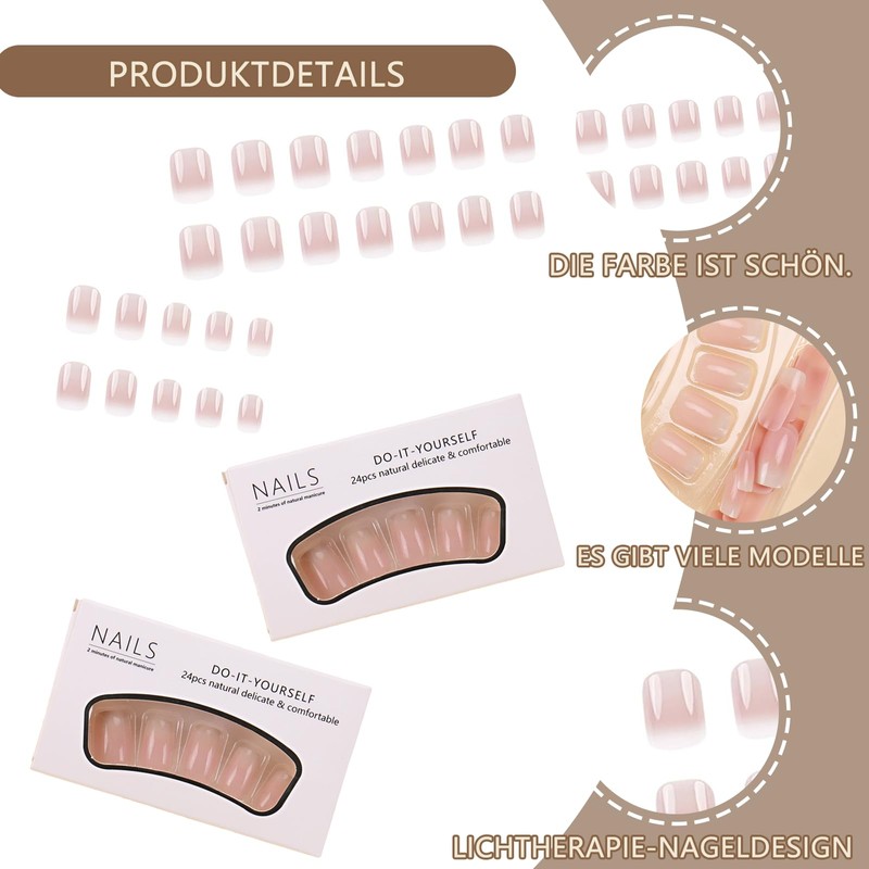 Pack of 48 press on nails for sticking, nail press on, fingernails for gluing, false gluing, white and pink, short, medium square. Package includes: 48-piece set of false nails are made of durable material that offers a natural and stylish look; for various occasions such as parties, shopping or daily use. Easy to use: the press on set nails for sticking on are easy to use and do not require The adhesive layer sticks firmly and can be easily removed without damaging the natural nails; ideal for quick and stylish nail changes. Versatile design: the fake nails set offers a variety of styles and shapes to match any outfit; the short nails are practical yet fashionable; for women who want to upgrade their look quickly and easily. Durability and comfort: the false nails are designed to be comfortable to wear; which reduces pressure and discomfort, making them ideal for all-day use; enjoy stylish nails. Wide applications: the 48-piece set is a great gift idea for friends and family who want to style their finger nails; stick on artificial nails the versatile designs and easy to use make it a popular gift for everyone Enjoy stylish false nails.