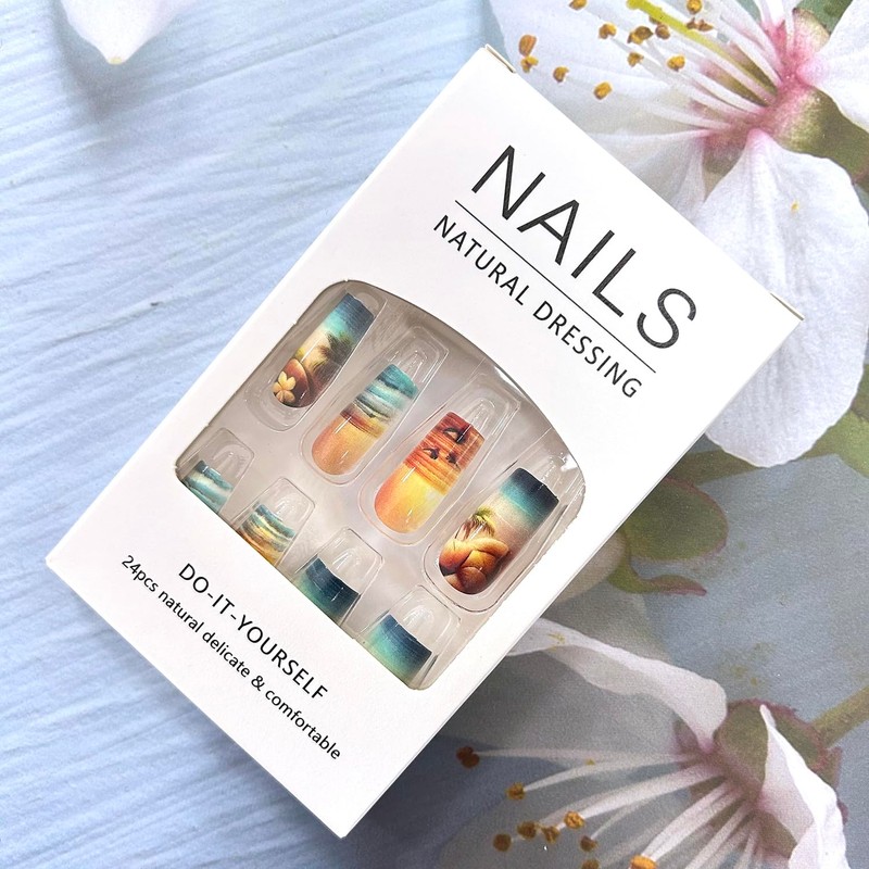 - Fake Nails Design: Our artificial nails use beach, waves, coconut tree, flower and sunset design style, give you summer feeling, pretty and comfortable press on nails will give you good mood and add luster to you