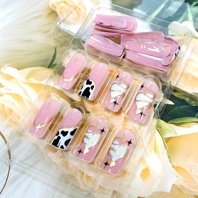 - Eye-catching Design: Beautiful pink coffin nails with gold snake line and cow print patterns that will make you stand out in any occasion.