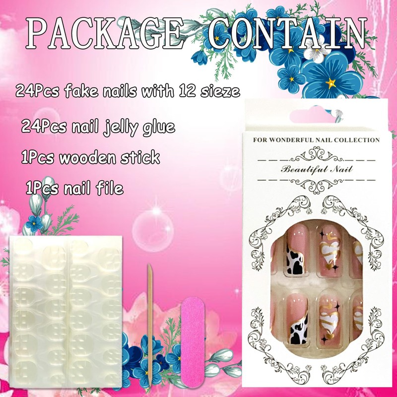 - Great Value: The package contains 24 pieces of medium square fake nails of different sizes, 1 mini nail file, 1 small wooden stick, 1 piece of nail glue sticker, giving you plenty of nails to use for multiple occasions.