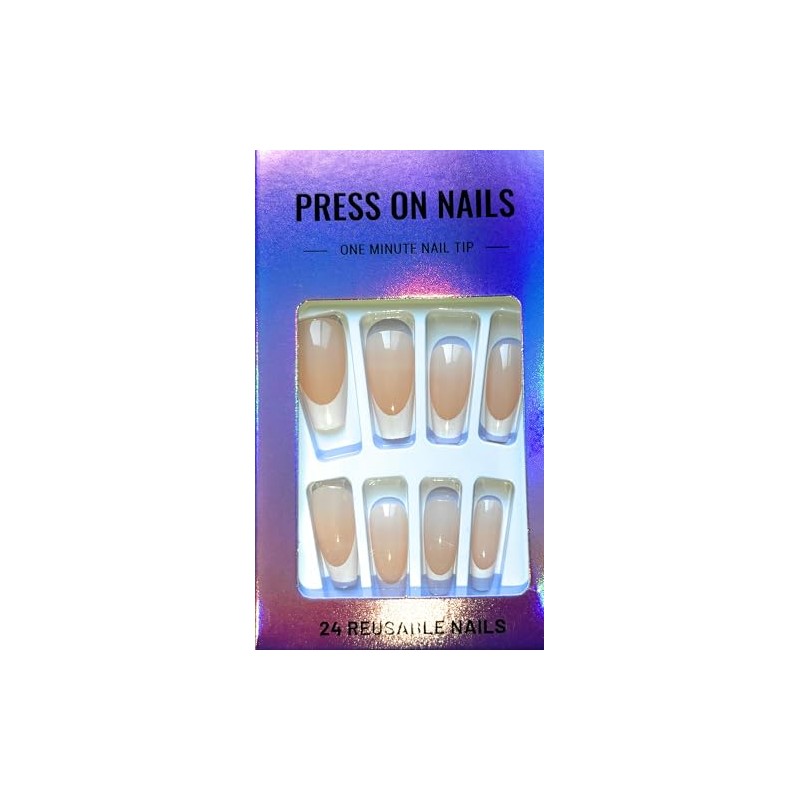 Press On Nails, One Minute Nail Tip, 24 Reusable French Manicure Nails, Natural White Tips 24 pc
