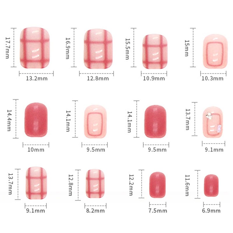 - 【Multiple Sizes】You'll get 24 false nails in 12 sizes. 1 mini nail file, 1 small wooden stick, 1 piece of nail glue sticker and 1 piece cleaing paper. Glue on nails are perfect for most people's nails.