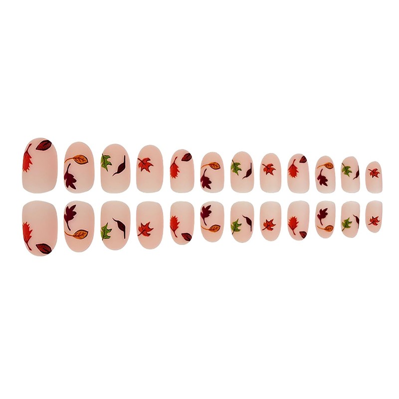 Press on Nails Short Oval OFDNE Fall Fake Nails False Nails with Designs Maple Leaves Full Cover Matte Glue on Nails Stick on Nails Acrylic Nails for Women Girls 24 Pcs