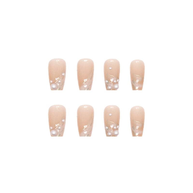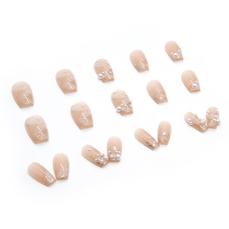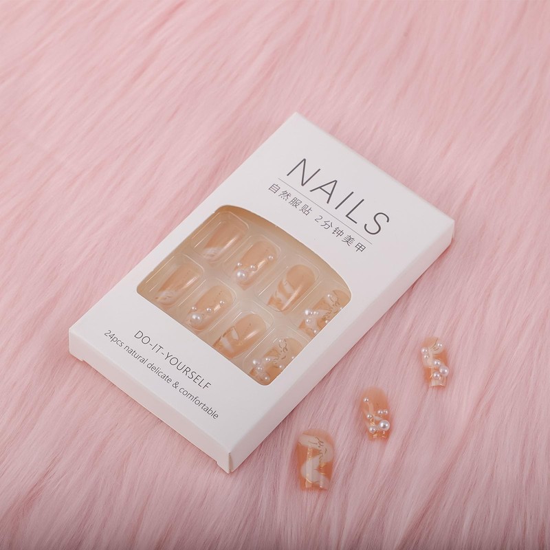 Press On Nails, Short Square Shape, Stick on Nails,Glue on Nails Fake False Nails on 24PCS for Women and Girls (Pearl Silk)