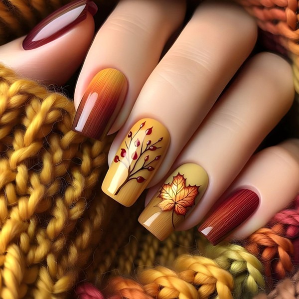 - Unique design: Our medium square nails are designed with bright autumn elements, making your nails look more elegant and charming, and easily create an artistic style with an autumn atmosphere.