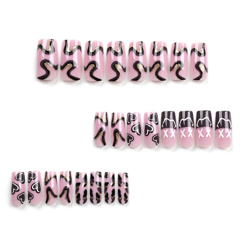 - Eye-catching Design: Beautiful pink coffin nails with brown heart and wavy line patterns that will make you stand out in any occasion.