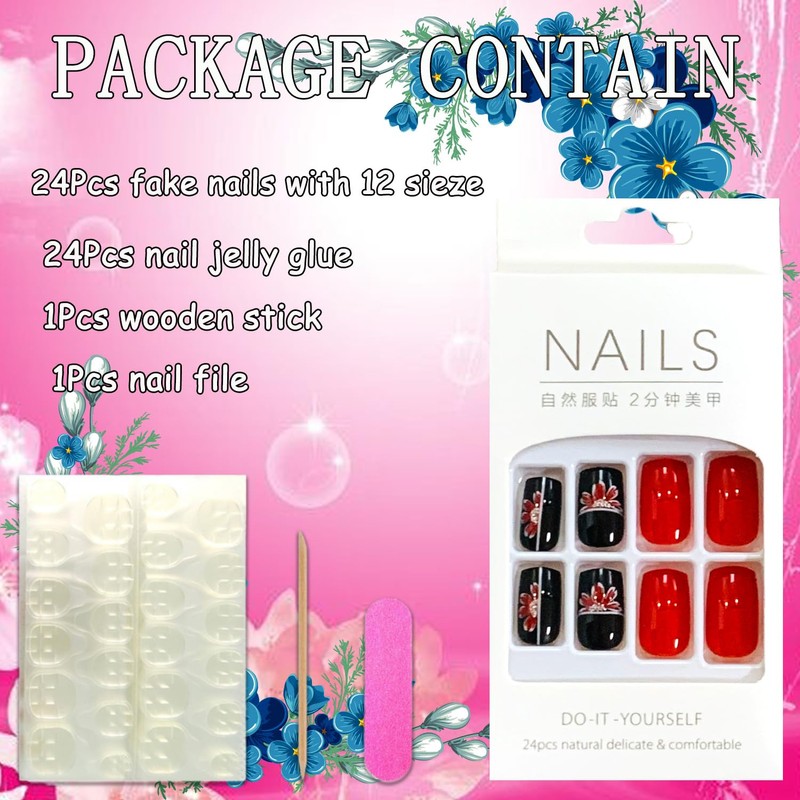 - Great Value: The package contains 24 pieces of medium square fake nails of different sizes, 1 mini nail file, 1 small wooden stick, 1 piece of nail glue sticker, giving you plenty of nails to use for multiple occasions.