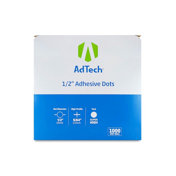 - 1000 1/2 Inch Glue Dots Per Roll, 5/16" High