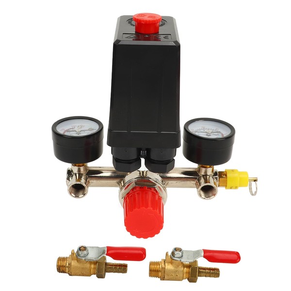 Pressure Switch Manifold Regulator Gauges Air Compressor Pressure Switch Control Valve 0 to 180PSI with 2 Gauge