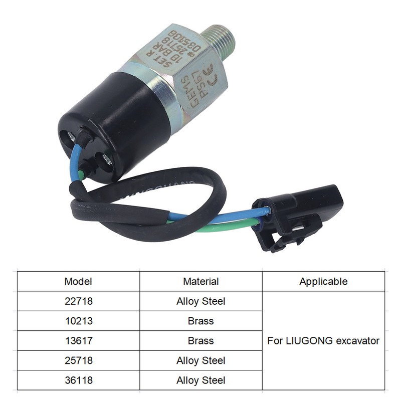 1、APPLICABLE MODEL: Excavator pressure switch, suitable for LIUGONG excavator, can directly replace the old or damaged pressure switch. 2、METAL MATERIAL: The pressure switch is made of excellent metal, with high hardness, rust resistance, high temperature resistance and long service life. 3、HIGH ACCURACY: With fine workmanship, the pressure switch has high accuracy and sensitivity to ensure stable operation of the excavator. 4、STANDARD SIZE: The excavator pressure sensor has standard interface to ensure firm connection, with good sealing and stable performance. 5、EASY INSTALLATION: The pressure switch has a simple structure, which is convenient for installation and replacement, and suitable for novice operation.