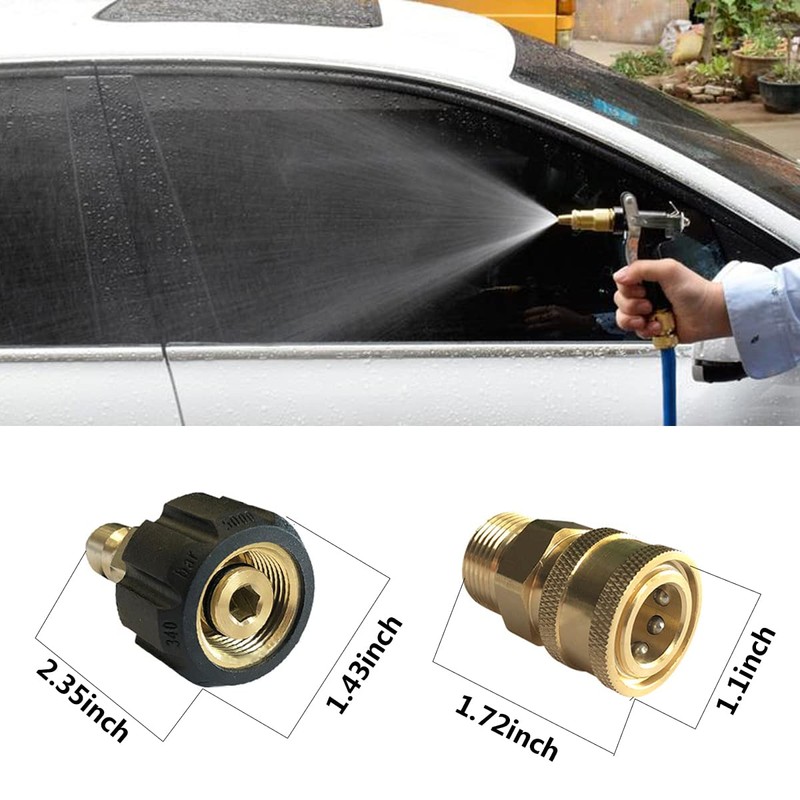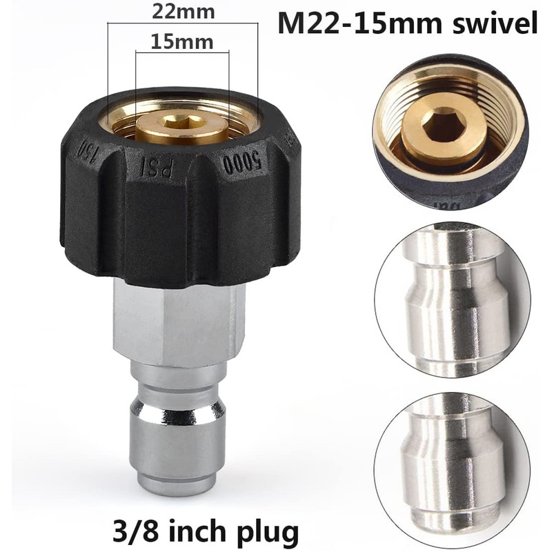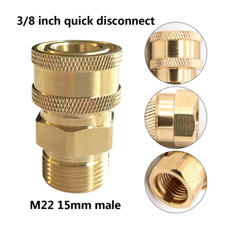 - 【High Quality】M22 15mm Quick Connect is made of corrosion-resistant lead-free brass. The working pressure is up to 5,000 PSI which will make your washing work more efficient.